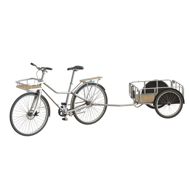 Il modello dei dedigner svedesi sarebbe anche predisposto per essere completato da un cestino sul davanti e da un carrellino-rimorchio dietro.