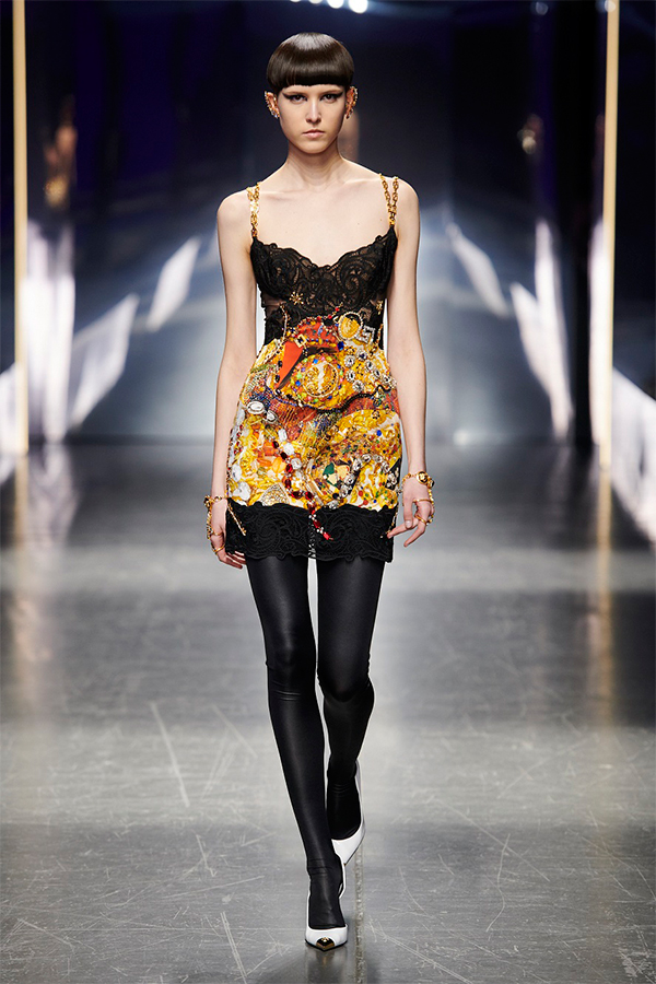 Donatella Versace Questa collezione ha l’obiettivo di portare avanti la conversazione sul processo di cambiamento del modo di vestire dell’uomo di oggi, dando a ciascuno la possibilità di esplorare ed esprimere i vari aspetti del proprio carattere attraverso le proprie scelte di stile.