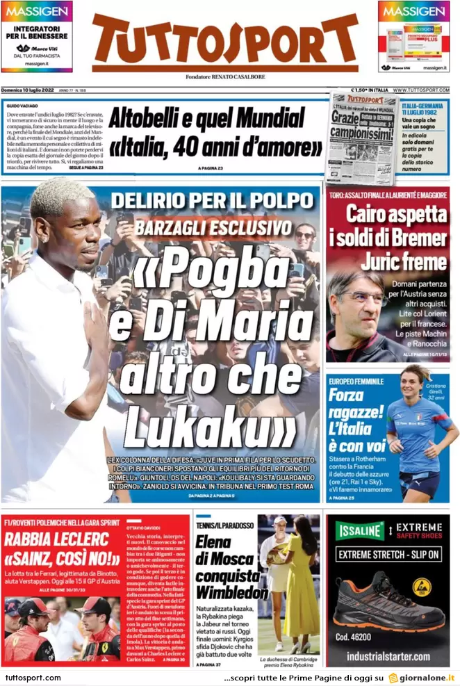 Di seguito le prime pagine dei principali quotidiani sportivi italiani per il giorno 10 luglio 2022. CLICCA SULL'ELENCO QUI SOTTO PER LEGGERE TUTTE LE PRIME PAGINE
