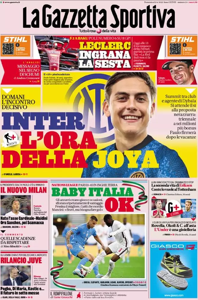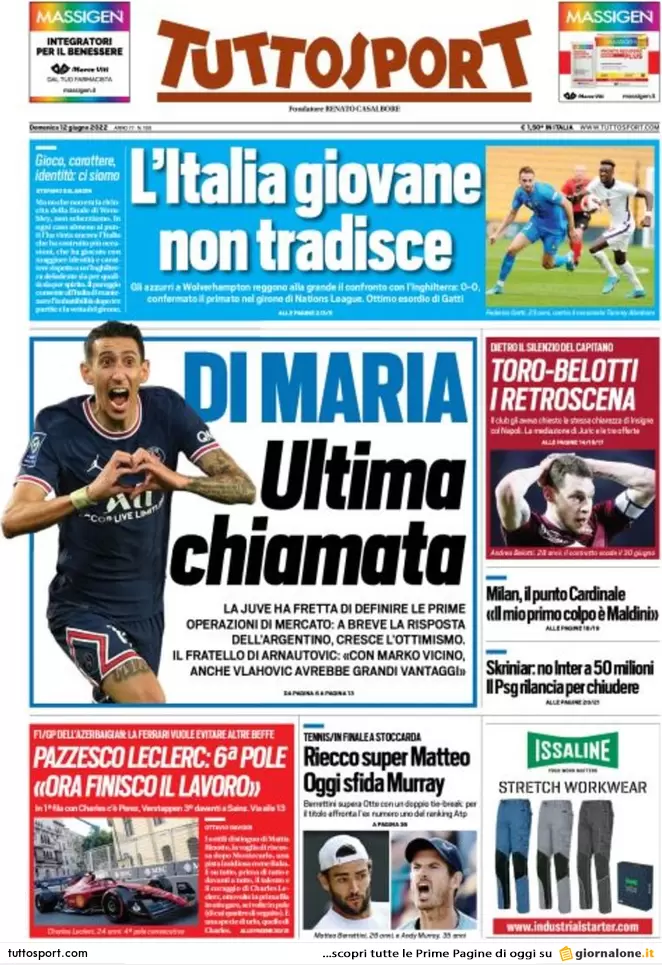 Prime pagine quotidiani sportivi 12 giugno 2022: Dybala-Inter e Di Maria-Juve