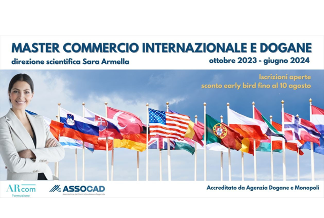 Sara Armella, in qualità di Direttore Scientifico di ARcom Formazione, è lieta di presentare la nuova edizione del “Master Commercio Internazionale e dogane” che avrà inizio nel mese di ottobre 2023. Il Master, organizzato da ARcom Formazione in collaborazione con Assocad (Associazione nazionale dei Centri di Assistenza Doganale), è stato il primo corso di alta formazione da 200 ore a essere approvato dall’Agenzia delle dogane e dei monopoli, già nel luglio 2020.
