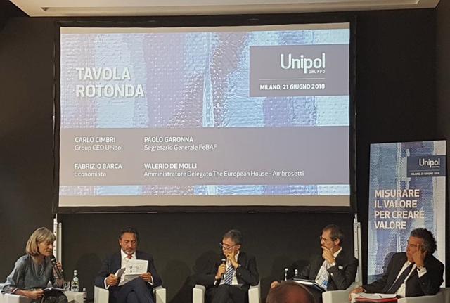 Si è svolta oggi, presso la Torre Velasca di Milano, la presentazione del Bilancio Integrato 2017 del Gruppo Unipol, documento che per il secondo anno integra i risultati finanziari con quelli conseguiti nella sostenibilità socio-ambientale. Per l’occasione, è stata organizzata la tavola rotonda “Misurare il valore per creare valore” nel corso della quale sono stati resi noti anche gli impatti extra finanziari del Gruppo rilevati da una ricerca inedita di The European House - Ambrosetti. All’evento hanno preso parte Carlo Cimbri, Group CEO Unipol; Fabrizio Barca, Economista; Paolo Garonna, Segretario Generale FeBAf e Valerio De Molli, Managing Partner e Amministratore Delegato The European House – Ambrosetti.
