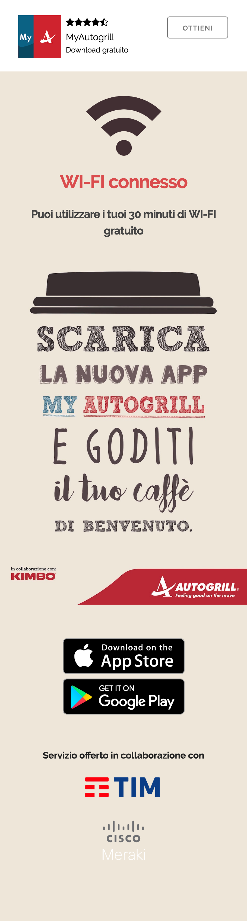Il progetto prevede complessivamente la copertura di circa 350 aree di sosta Autogrill con connettività Internet Wi-Fi basata sulle reti ultrabroadband di TIM 4G, 4G Plus (dove già disponibile) e NGN, erogata attraverso oltre 600 access point forniti da Cisco, partner tecnologico dell’iniziativa, e basati su soluzioni Cisco Meraki.