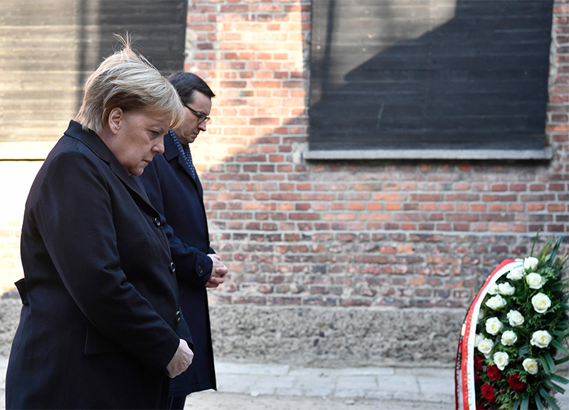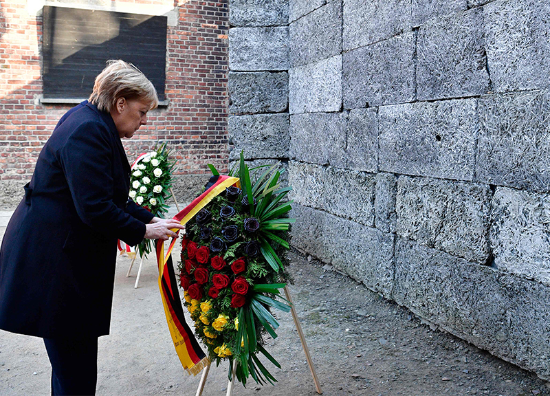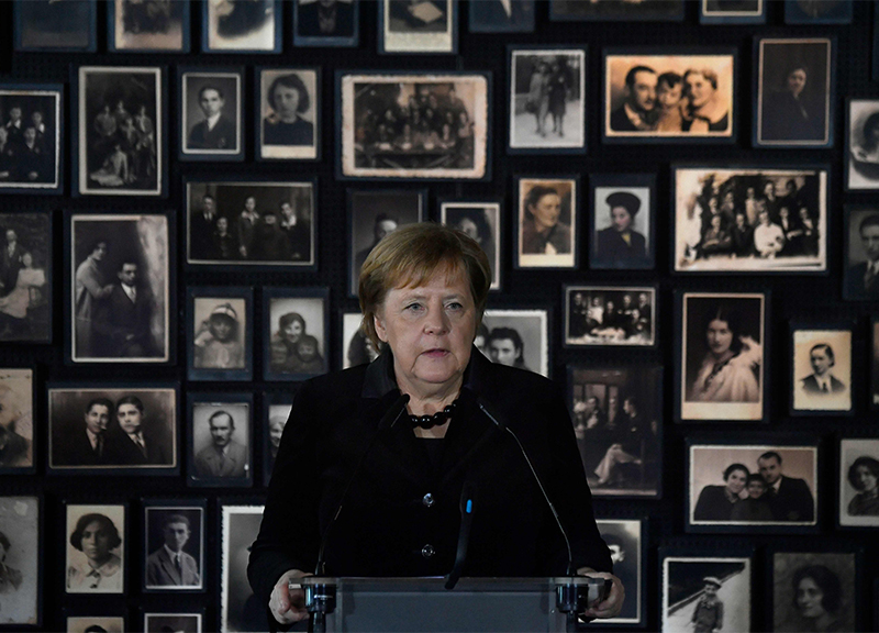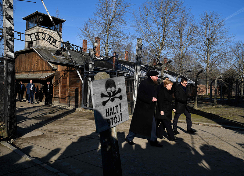 Merkel ad Auschwitz per la prima volta. "Tolleranza zero su antisemitismo"