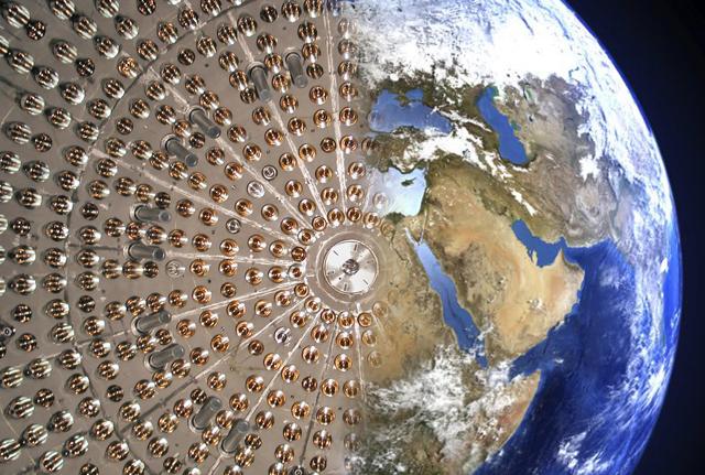 Nell’immagine INFN il rivelatore Borexino con gli scintillatori