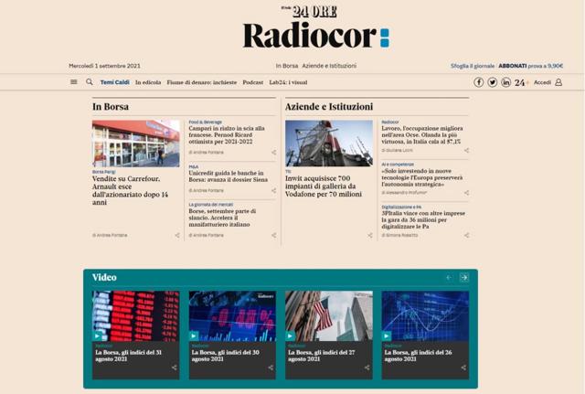 Radiocor, è online il nuovo canale d'informazione sul sito del Sole 24 Ore