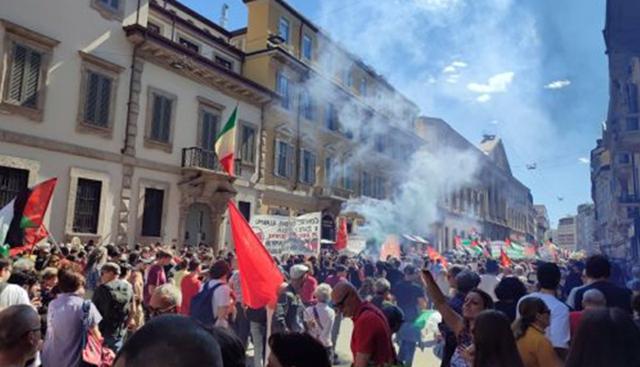 All'inizio della manifestazione gli insulti dei Giovani Palestinesi nei confronti della Brigata ebraica, che si scioglie prima dell'arrivo in Duomo. La 'trattativa' con Anpi per la testa del corteo