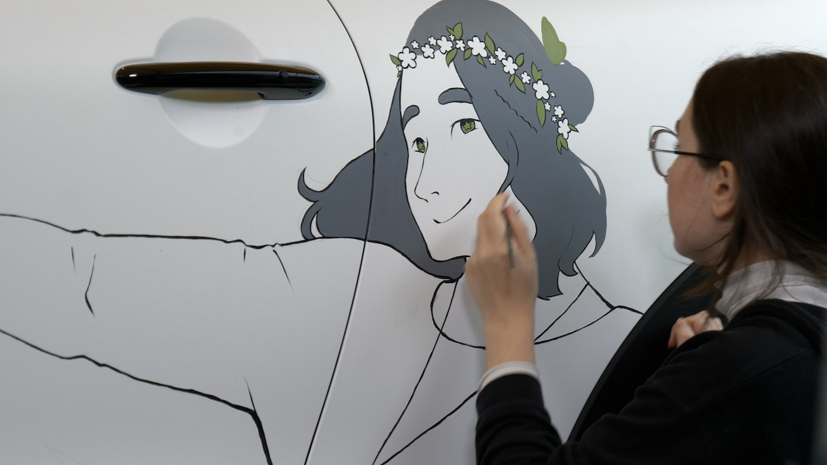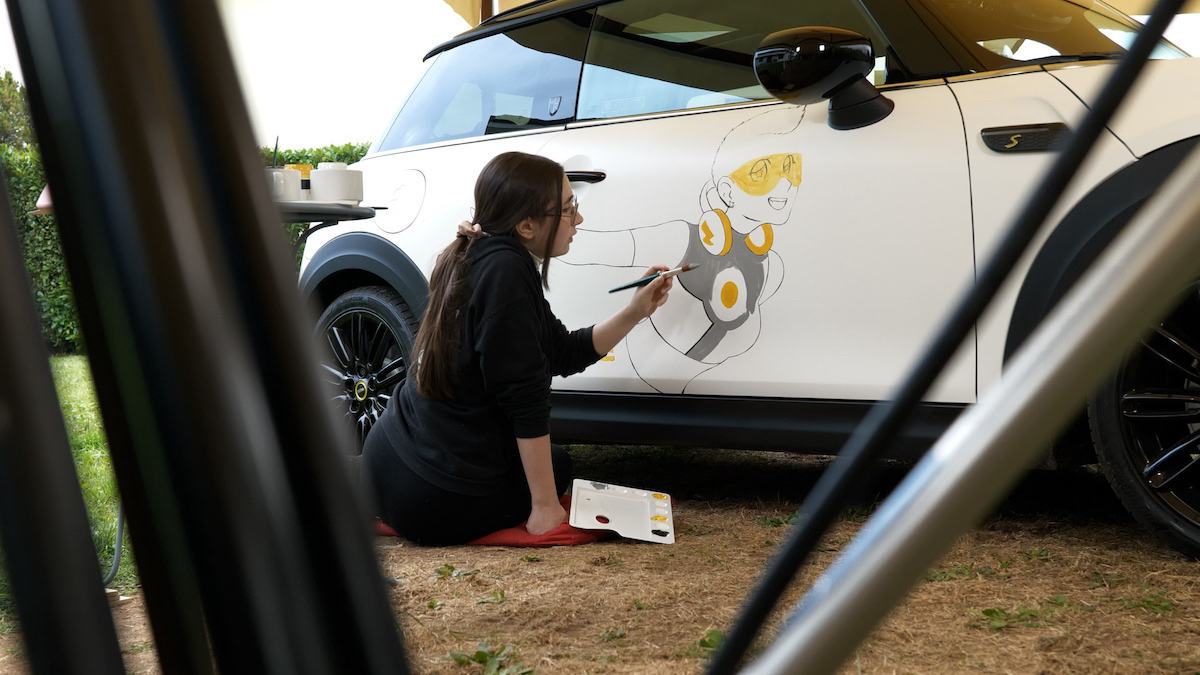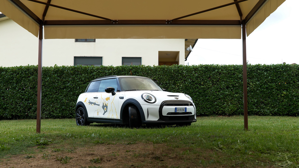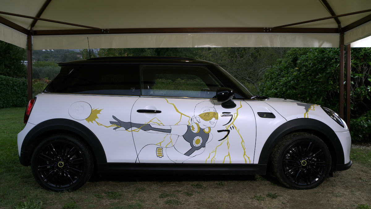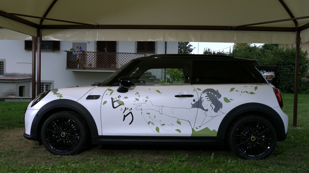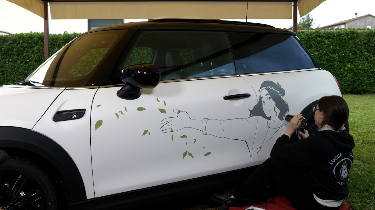L’artista Caterina Rocchi, Direttrice Artistica di Lucca Manga School, ha utilizzato una MINI Elettrica come tela di una sua opera carica di significati