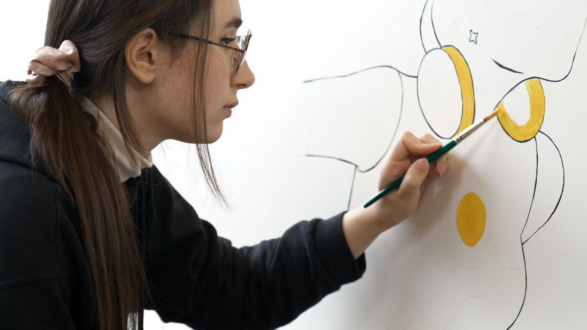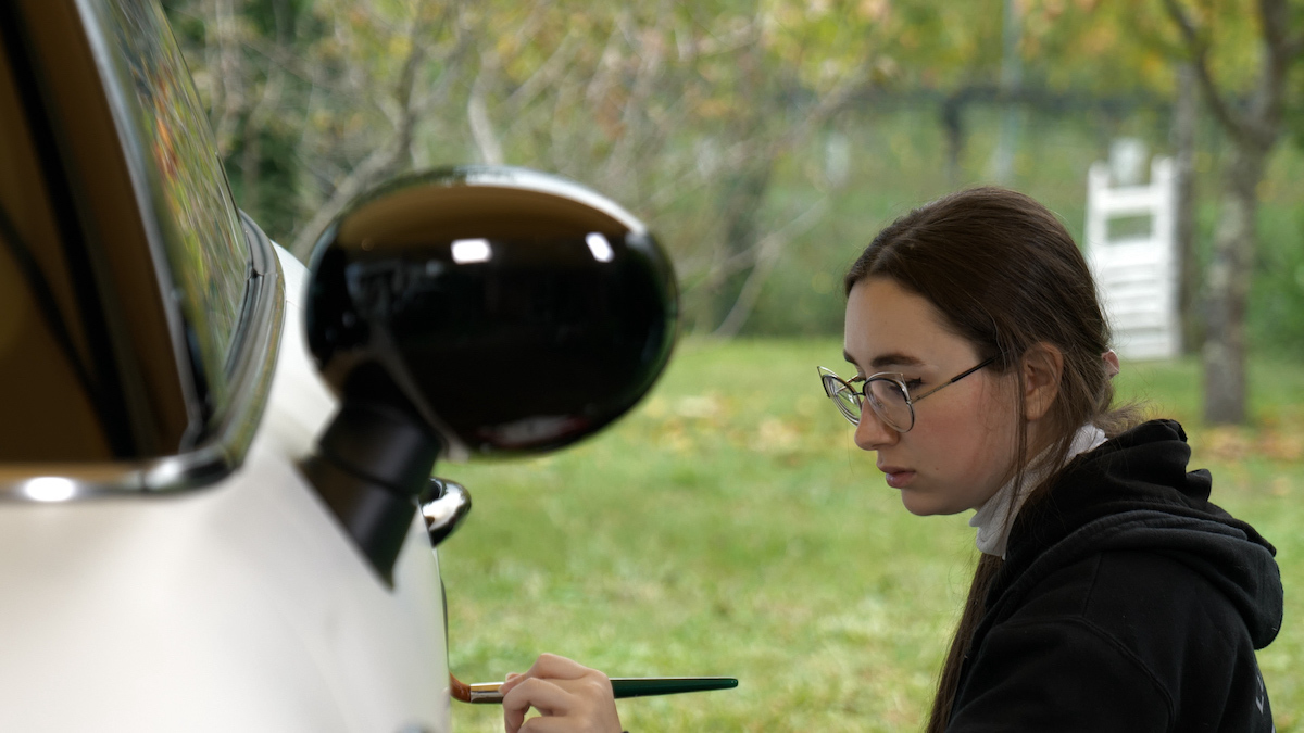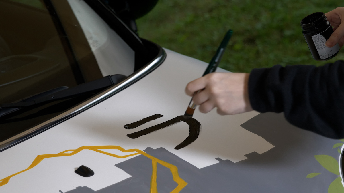 L’artista e insegnante Caterina Rocchi, durante l’esposizione della sua opera, ci ha raccontato: “Prendendo ispirazione dalla sottocultura Ita-Sha di appassionati di modding automobilistico in Giappone, ho creato due personaggi, uno per ogni fiancata, che si incontrano poi simbolicamente sul cofano nello slogan Big Love. Ita-Sha, scritto 痛車 racchiude i simboli di ‘dolore’ e di ’macchina’, il dolore è dato dalla quantità sovra stimolante di colori e dal cringe dei soggetti rappresentati, ma Ita-Sha, scrivendolo invece イタ車 è anche la macchina italiana. Ho inserito quindi l'estetica italiana, rendendo la mia interpretazione più elegante e digeribile rispetto alla Ita-Sha classica, attraverso un diverso utilizzo del colore che richiama i monocromatici manga più che l'animazione”