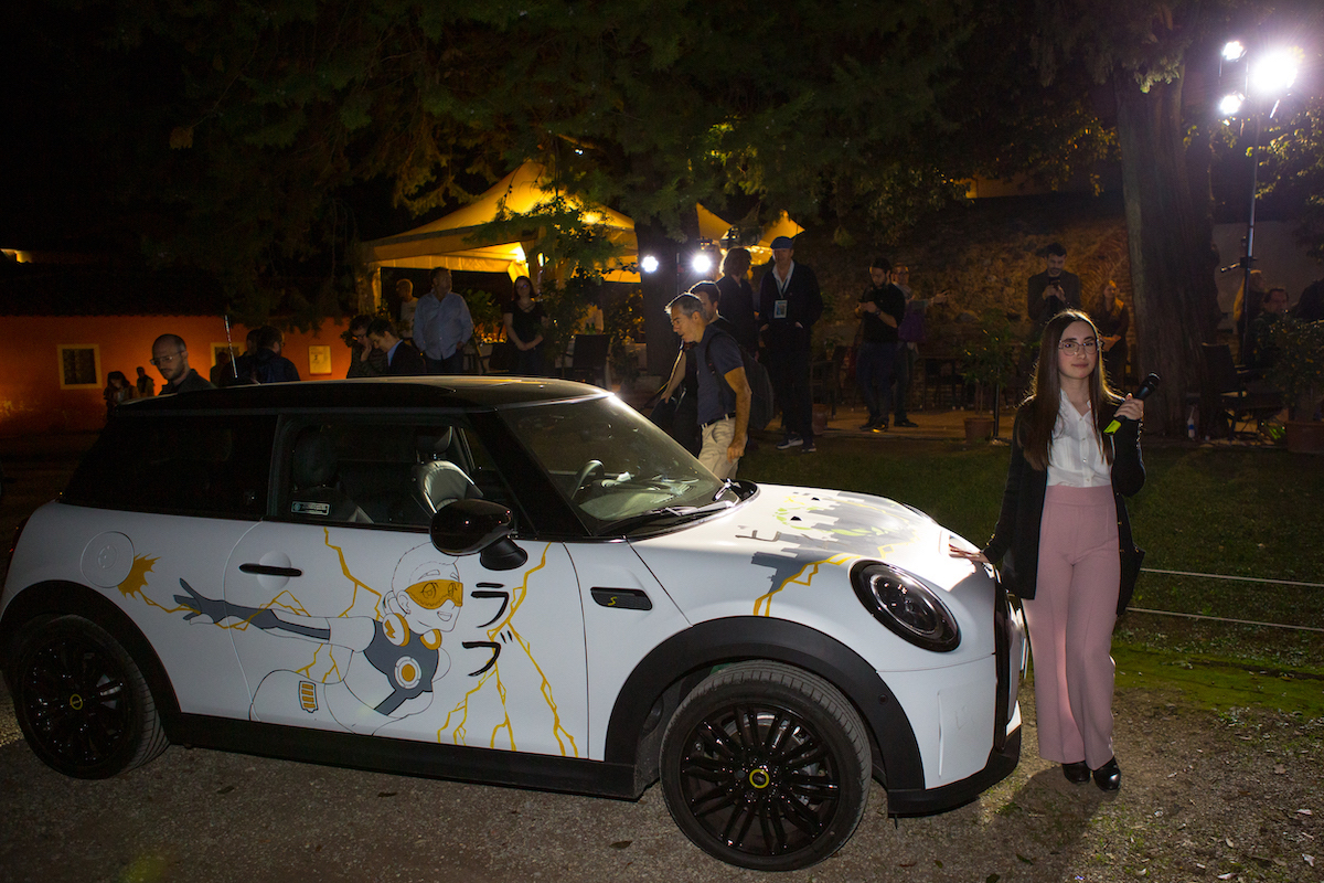 Caterina Rocchi, Direttrice Artistica di Lucca Manga School ha così utilizzato una MINI Elettrica come tela della sua opera, creando una sua opera d’arte e la sua interpretazione e visione del tema sul quale gli studenti della scuola lavoreranno durante l’anno.
