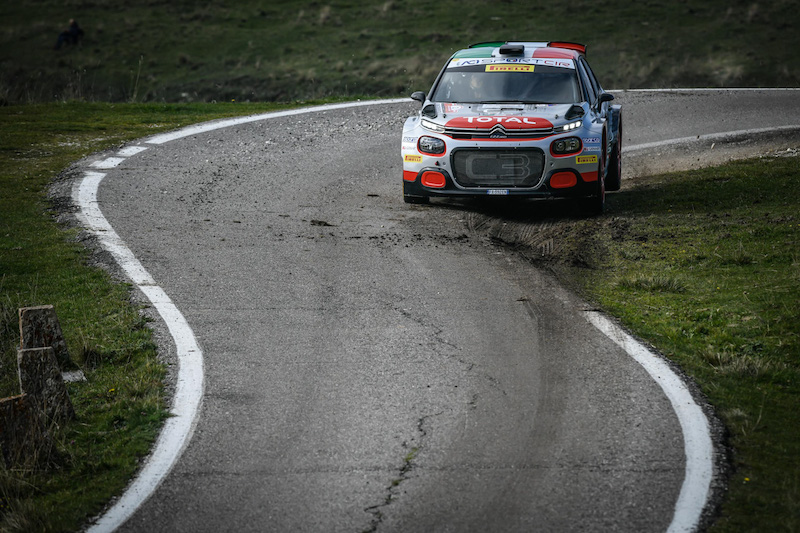 Non è cominciato come avrebbero voluto il 2 Valli di Luca Rossetti ed Eleonora Mori, ancora in lotta per la conquista del titolo italiano 2019.  Dopo una prima speciale da top 3, il duo Citroen Italia ha accusato noie al cambio ed è stato vittima di un testacoda che gli ha fatto perdere tempo e con esso una posizione nella classifica provvisoria, sebbene il distacco dal podio sia ancora ridotto.