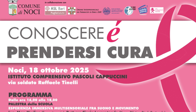 Comune di Noci: in programma sabato 18 ottobre la giornata per promuovere la prevenzione oncologica