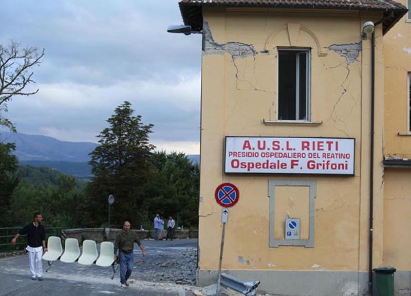 A tal proposito intuibili le difficoltà del personale sanitario che coraggiosamente ha allestito il punto di primo soccorso e un obitorio a cielo aperto nel parcheggio esterno dell'ospedale di Amatricia, evacuato perché reso totalmente inagibile dal sisma.
