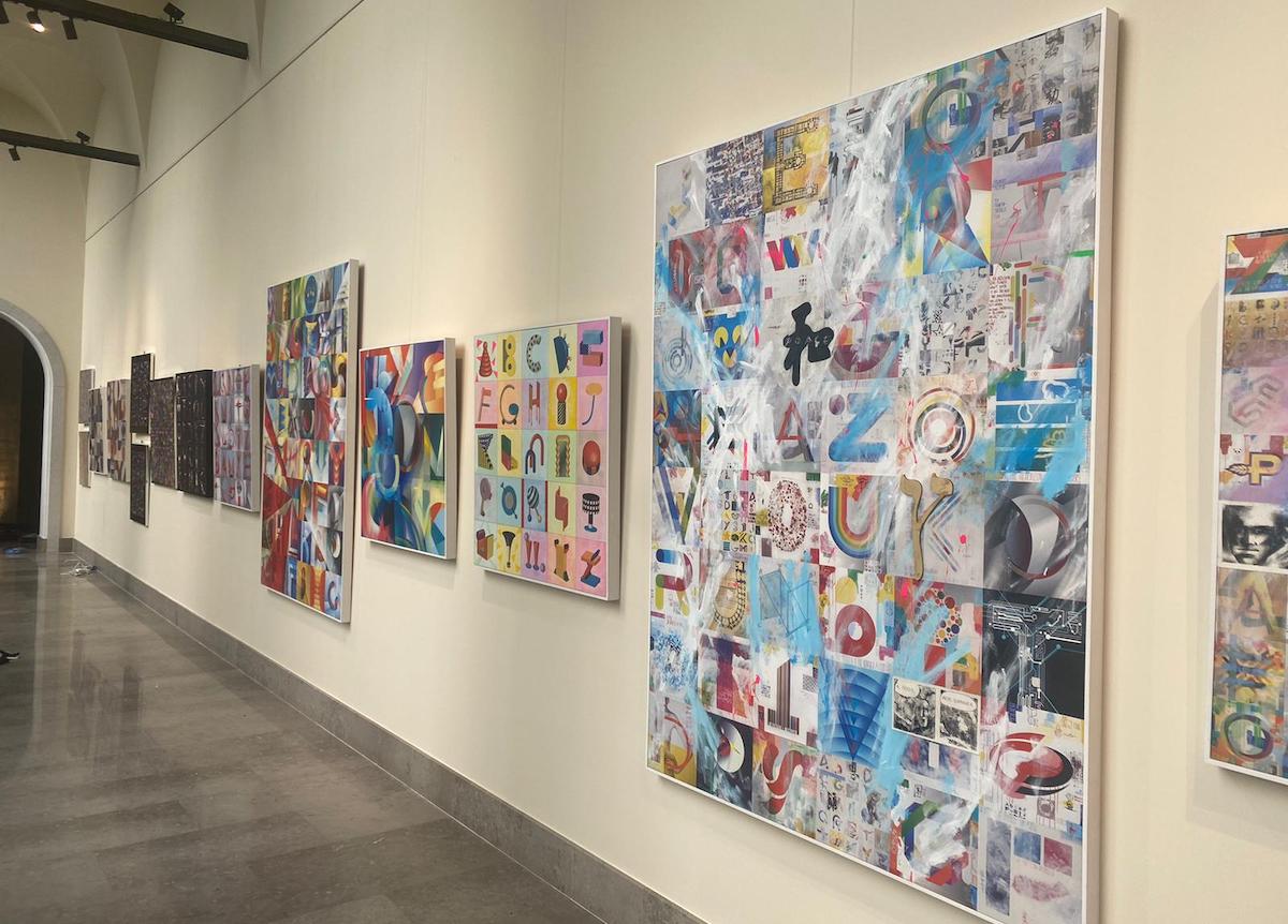 Le altre opere, quadri e installazioni, mostrano invece l’evoluzione della Type art, il Movimento presentato al pubblico dall’artista nel 2016 con una personale al Palazzo della Permanente di Milano, e teorizzato l’anno successivo con il Manifesto per la Liberazione delle lettere. Che non sono più incatenate tra loro per dare vita a delle parole, ma vivono di vita propria e possono essere il soggetto di un’opera d’arte. Per dirlo con il linguaggio della semiotica, si tratta di fonemi, di tratti distintivi primari svincolati dall’obbligo di creare espressioni formanti.