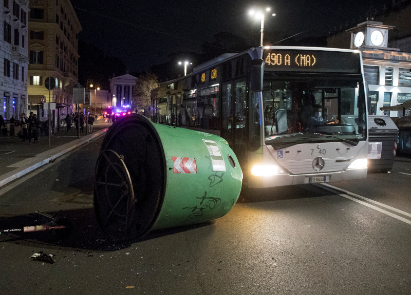 Su lungotevere in Augusta e su ponte Regina Margherita sono continuati gli scontri con le forze dell’ordine con i manifestanti che hanno lanciato bottiglie di vetro e altre bombe carta. Sono stati incendiati anche diversi monopattini e biciclette.