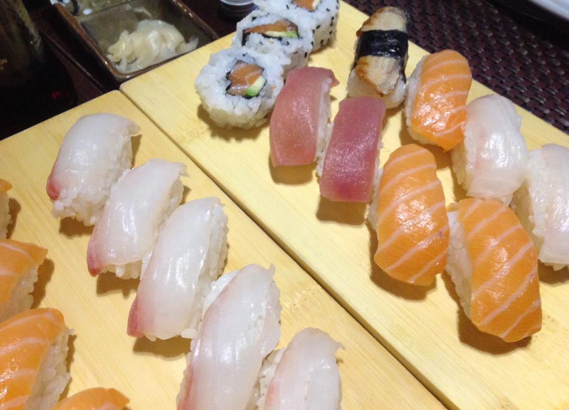 Per fare la prova del nove il primo passo è quello di leggere i valori nutrizionali dei menu giapponesi. Si scopre allora che ogni singolo pezzetto di sushi (ad esempio un nigiri) vale cinquantina di calorie. Il che significa che una porzione da 8 vale all’incirca 400 calorie. Il problema è che in una cena a base di sushi difficilmente si consumano otto pezzi. In media si arriva anche a 14. Fare il conto è semplice, solo così si arriverebbe a circa 700 calorie. Per avere un’idea un po’ più completa diciamo che un nigiri salmone vale circa 50kcal/pz, ventresca di tonno (parte grassa) 70 kcal/pz, tonno (parte magra) 44,5 kcal/pz, unaghi (anguilla) 80 kcal/pz, orata 43,4 kcal/pz, branzino 35 kcal/pz, anguilla grigliata 62,5 kcal/pz, sgombro 60 kcal/pz. Questo solo per citare i più appetibili.