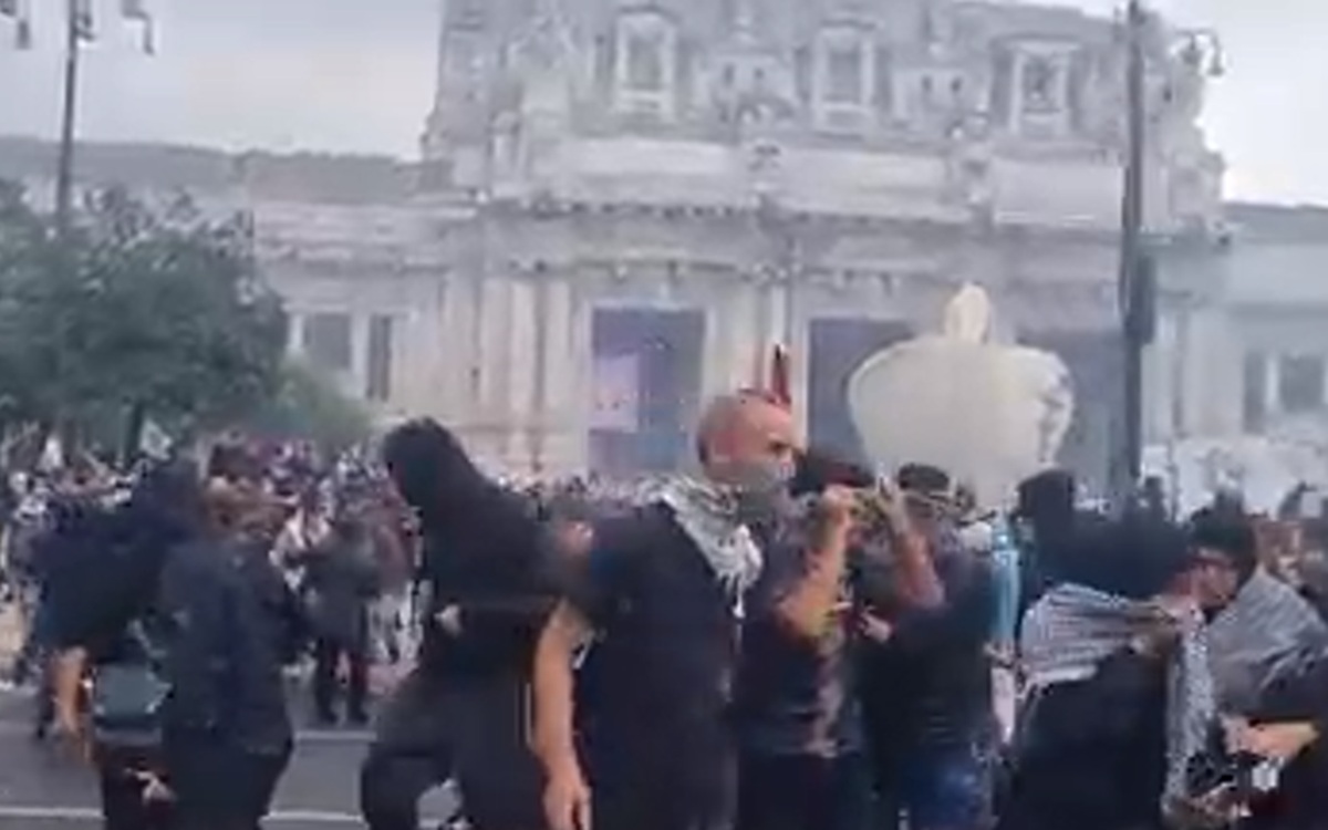 Scene da guerriglia urbana alla Stazione Centrale di Milano, dove si è concluso il corteo per Gaza nel pomeriggio del 22 settembre. Alcuni manifestanti hanno cercato di assaltare la stazione lanciando oggetti e parti di impalcature verso la polizia che ha cercato di respingerli con cariche di alleggerimento. Alcuni hanno preso degli idranti usandoli contro le forze dell’ordine che hanno risposto con un fitto lancio di lacrimogeni per disperdere i partecipanti in piazza Duca d’Aosta.