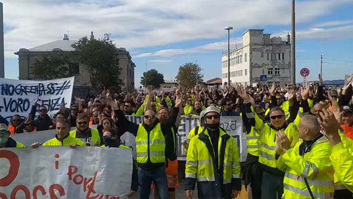 La rivolta dei portuali di Trieste induce il governo a far pagare alle aziende i tamponi ma loro non ci stanno: “l’unica apertura che accettiamo è l’abolizione del green pass per tutti” - Nonostante il parere della Commissione di Garanzia la Fisi conferma lo sciopero ad oltranza dal 15 al 20 ottobre di tutti i lavoratori contro il green pass. Preoccupazione di governo e amministrazioni regionali per la possibile alta adesione - Treviso, sciopero di 8 ore venerdì prossimo contro il green pass alla Electrolux: lo hanno deciso le rappresentanze sindacali interne – Coldiretti, 100 mila nei campi senza pass, raccolta a rischio - Il professor Guido Cappelli, docente di letteratura italiana a Napoli, fa lezione all’aperto per gli studenti senza green pass e dice: “come faccio a non ricordare che i gerarchi nazisti chiedevano la delazione ai figli dei padri?” - I video sul web del poliziotto che prima accerchiava insieme ai manifestanti una camionetta e poi pestava e arrestava un cittadino lo hanno indotto a presentarsi in Questura e ad autodenunciarsi – Riunione al Viminale sulla stretta alle prossime manifestazioni, sorvegliate anche le chat Telegram - Scritta nel palazzo della sede dell’Ordine dei medici di Trento: “servi del sistema”, pioggia di insulti e minacce nella pagina Facebook della Asl Toscana Sud Est - Walter Ricciardi, consulente del ministro Speranza: “la pandemia durerà ancora mesi se non anni a livello internazionale. Fare i tamponi è logorante, la gente sceglierà di vaccinarsi” - Il governo francese è intenzionato di chiedere al Parlamento l’estensione dello stato d’emergenza fino al 31 luglio, Italia si unirà anche questa volta? - Nuovo rapporto dell’Aifa sulle vaccinazioni: segnalati 608 decessi e oltre 14 mila reazioni gravi - Boom di accessi al pronto soccorso nell’ultimo anno di minori per problemi neuropsichiatrici – Albania, stato d’emergenza per la difficoltà di approvvigionamento energetico