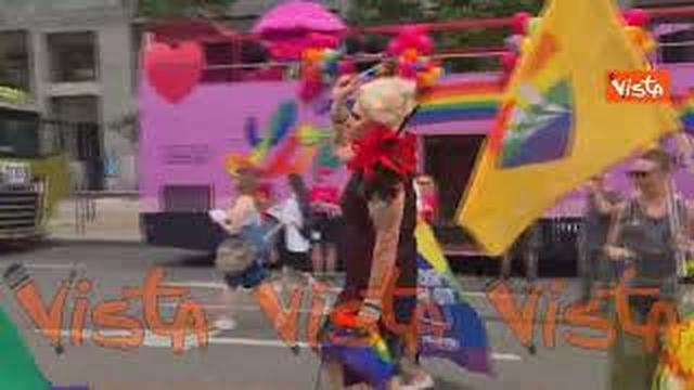 Tra i partecipanti al Pride di Milano anche una “Matrona romana” con un lungo abito arcobaleno ispirato all’epoca di Cesare.