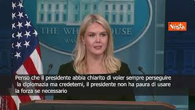 “Penso che il presidente abbia chiarito di voler sempre perseguire la diplomazia ma il presidente non ha paura di usare la forza se necessario..” Così la portavoce del Presidente degli Stati Uniti Donald Trump, Karoline Leavitt in una conferenza stampa.