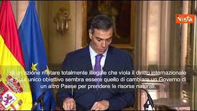 “Il governo di Spagna non ha riconosciuto il Governo di Maduro, perché ha infranto le regole e la sua elezione fu illegittima. Proprio per questo non può riconoscere la legittimità di un’azione militare totalmente illegale che viola il diritto internazionale e il cui unico obiettivo sembra essere quello di cambiare un Governo per prendere le risorse naturali. L’operazione a Caracas è un precedente terribile e molto pericoloso, che ricorda le aggressioni del passato”. Lo ha detto il Presidente della Spagna Pedro Sanchez in una conferenza stampa dal Palazzo dell’Eliseo.