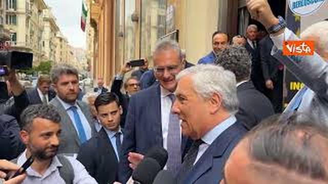 Il ministro degli esteri Antonio Tajani fa una foto con il candidato sindaco di centro destra di Genova Pietro Piciocchi: “Sei troppo alto, portatemi uno sgabello”.