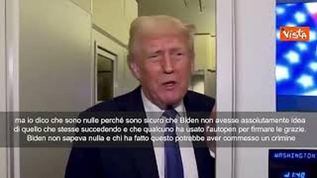 “Le grazie concesse da Joe Biden sono nulle, non valide e senza nessun effetto. Sono state firmate con l’Autopen. Biden non le ha firmate, e, cosa ancora più importante, non ne sapeva nulla. Non è una mia decisione, dipenderà da un giudice, ma io dico che sono nulle perché sono sicuro che Biden non avesse assolutamente idea di quello che stesse succedendo e che qualcuno ha usato l’autopen per firmare le grazie. Biden non sapeva nulla e chi ha fatto questo potrebbe aver commesso un crimine”. Così Trump nell’Air Force One. Oltre alla grazia concessa per i reati commessi da suo figlio Hunter, Biden ha concesso la grazia a tutti i suoi famigliari, a Liz Cheney e ad Anthony Fauci.