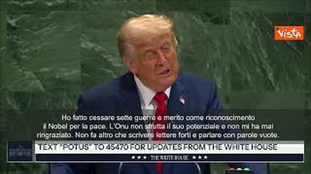 “Ho fatto cessare sette guerre e merito come riconoscimento il Nobel per la pace. L’Onu non sfrutta il suo potenziale e non mi ha mai ringraziato. Non fa altro che scrivere lettere forti e parlare con parole vuote”, lo ha detto il Presidente Usa Trump all’Assemblea dell’Onu.