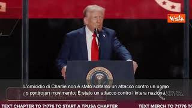 “Ogni singolo americano dovrebbe guardare con attenzione nell’anima contorta e nello spirito oscuro di chiunque possa desiderare di uccidere un giovane tanto buono come Charlie. Uccidere chiunque è terribile, ma uccidere un uomo come lui è inaccettabile: non lo meritava. Non lo meritava lui, non lo meritava il nostro Paese. E chiunque cerchi di trovare delle scuse per questo è semplicemente fuori di testa. L’omicidio di Charlie non è stato soltanto un attacco contro un uomo o contro un movimento. È stato un attacco contro l’intera nazione. È stato un orribile assalto agli Stati Uniti d’America, un’aggressione alle nostre libertà più sacre e ai diritti donati da Dio. La pistola era puntata contro di lui, ma il proiettile era diretto contro tutti noi. Quel proiettile era mirato a ognuno di noi. Charlie è stato ucciso per aver espresso idee che quasi tutti in questa arena, e in gran parte del nostro Paese, condividono profondamente. Ma l’assassino ha fallito nel suo intento, perché il messaggio di Charlie non è stato messo a tacere. Oggi è più grande, più forte, più potente che mai. E non c’è davvero paragone” così il Presidente degli Stati Uniti Donald Trump al funerale di Charlie Kirk.