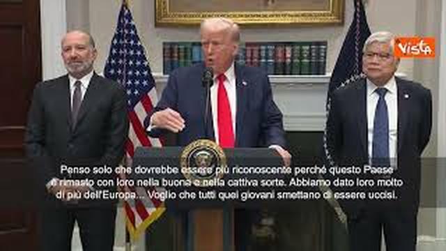 “Questa è la peggiore dichiarazione che potesse essere fatta da Zelensky e l’America non sopporterà ancora per molto”. Così Trump sulle parole di Zelensky, che ha dichiarato che la guerra contro la Russia durerà ancora a lungo. “Penso solo che dovrebbe essere più riconoscente perché questo Paese è rimasto con loro nella buona e nella cattiva sorte. Abbiamo dato loro molto di più dell’Europa… Voglio che tutti quei giovani smettano di essere uccisi”, ha aggiunto Trump.