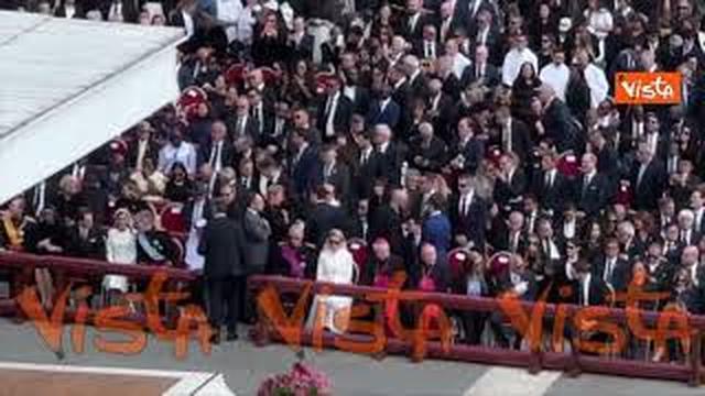 Il Presidente ucraino Zelensky e la Presidente della commissione Ue von der Leyen seduti vicini alla Messa di insediamento di Papa Leone XIV. La cerimonia si svolge in Vaticano.