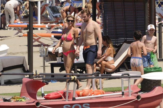 La bionda conduttrice di Striscia la Notizia si candida a vincere il premio “Mamma più sexy dell’estate 2013”. La Hunziker, in vacanza a Forte dei Marmi per rilassarsi durante la sua “dolce attesa”, ha sfoggiato un costume intero che ha lasciato poco spazio all’immaginazione. Complice il rigonfiamento dovuto al pancino, il casto costume da bagno si è rivelato più sexy di ogni bikini e trikini in circolazione: oltre al seno, sporgente dalla vertiginosa scollatura, la showgirl ha fatto intravedere buona parte dell’inguine, grazie a una sgambatura particolarmente audace dovuta al pancione.