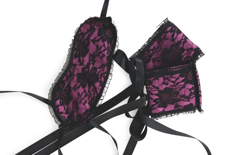 Maschera e polsini in pizzo Dentelle: Un set pensato per lei e composto da maschera e polsini per una vera esperienza di dominio. La sensualità del pizzo e del raso sulla pelle aumenteranno ulteriormente la percezione sensoriale per un gioco d’amore di vera passione.