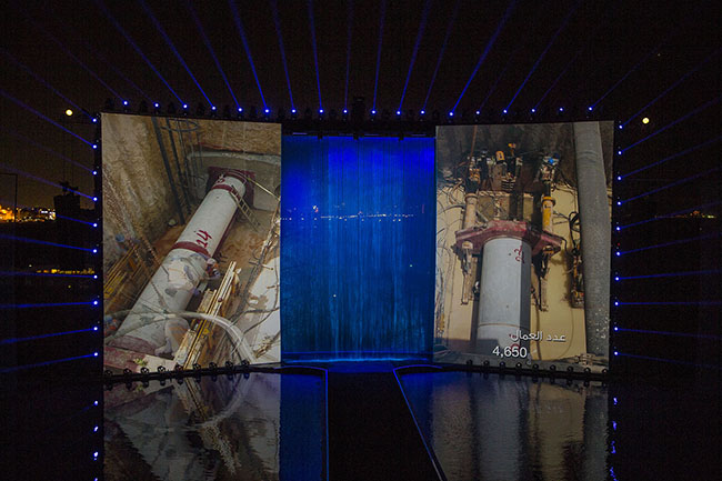 Da una tribuna di forma semicircolare, che riproduce la scenografia di un antico teatro romano, il pubblico ha assistito ad uno spettacolo unico perché, grazie alla fusione di coreografie danzanti sotto l’acqua con video ed effetti olografici creati ad hoc, vivrà lo storytelling della costruzione del Dubai Water Canal in modo emozionante ed immersivo. Successivamente Sua Altezza e tutti gli ospiti si sono imbarcati su sei vascelli per attraversare il canale che si è trasformato in un vero e proprio palcoscenico per la seconda parte dello show. In un crescendo di emozioni visive spettacolari, alimentate da proiezioni lungo le rive del canale e da ballerini-acrobati in costume che sull’acqua hanno raffigurato il nuovo life style di questa rinnovata area della città, si è arrivati alla rivelazione del Legacy Piece, opera d’arte firmata dal giovane scultore italiano Patrick Alò, che è stata installata in modo permanente lungo una delle rive del Water Canal lasciando per sempre una firma dell’arte italiana su questa grande opera ingegneristica.