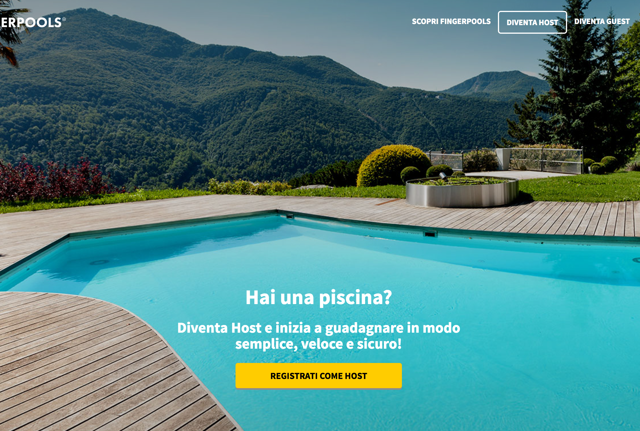Evoluzioni della sharing economy. Ecco Fingerpools.com, la prima piattaforma italiana che consente a chi non ha una piscina di tuffarsi in quella degli altri - pagando - e a chi una piscina ce l’ha di condividerla con altre persone traendone un guadagno. Un'idea pensata per cittdaini privati, ma anche per hotel, b&b, tennis club, discoteche, golf club, real estate e agriturismi. Come funziona? Si mettono in affitto dei posti in piscina nei giorni e negli orari desiderati, selezionando il tipo di persone che si preferisce ospitare (famiglie, sportivi, naturisti, solo donne, over 65, gay, ecc…) e accettando le prenotazioni. In questo modo, nuotare nella piscina di una persona che non si conosce, oppure in quella di un circolo privato senza essere iscritti, o di un hotel senza pernottare lì, non è più un sogno: Fingerpools trasforma il tuffo da “proibito” in social e apre così una nuova frontiera nel mercato globale del benessere e della sharing economy.