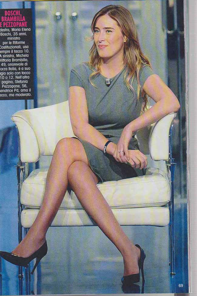 Tacco 12 o tacco 10 poco importa. Le donne delle politica italiana amano indossare i tacchi. Non ci sono dubbi, come documenta il settimanale Novella 2000. Da Maria Elena Boschi a Vittoria Brambilla, da Daniela Santanchè a Laura Ravetto... E anche se siamo ormai in inverno, per le parlamentari e le ministre, di ogni partito e schieramento, il tacco con gamba nuda resta la calzatura favorita... Marianna Madia e Mara Carfagna, invece, puntano sulle calzature flat... Perché loro non sono lo stesso politiche "ballerine".