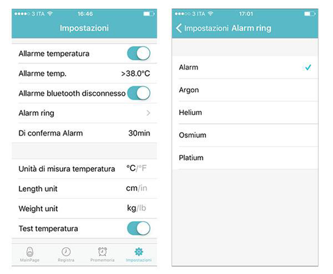 E’ anche possibile impostare “allarmi febbre” e di ricevere una notifica se la temperatura supera un certo limite.
