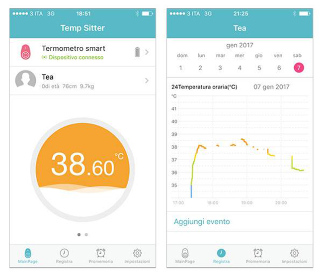 L’app gratuita “Temp Sitter” (iOs e Android) raccoglie le rilevazioni automatiche e mostra un grafico con l’andamento della temperatura.