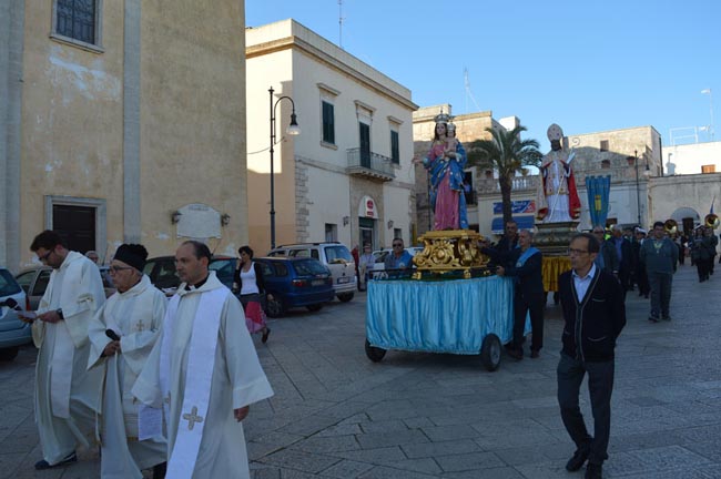 LO SGUARDO DI SAN NICOLA NEL SALENTO DOVE l’ORIENTE INCONTRA l’OCCIDENTE. Nel Salento l’Oriente e l’Occidente si fondono armoniosamente. Lo si legge nella cultura poliedrica dei salentini, nei fregi delle case e nello sguardo di San Nicola, il Santo orientale venerato anche a Salve la quarta domenica di maggio. La sua statua in legno ha una particolarità: gli occhi sono l’uno azzurro e l’altro verde, simbolo dell’Oriente e dell’Occidente che nel Salento hanno una sola anima e si fondono armoniosamente.
