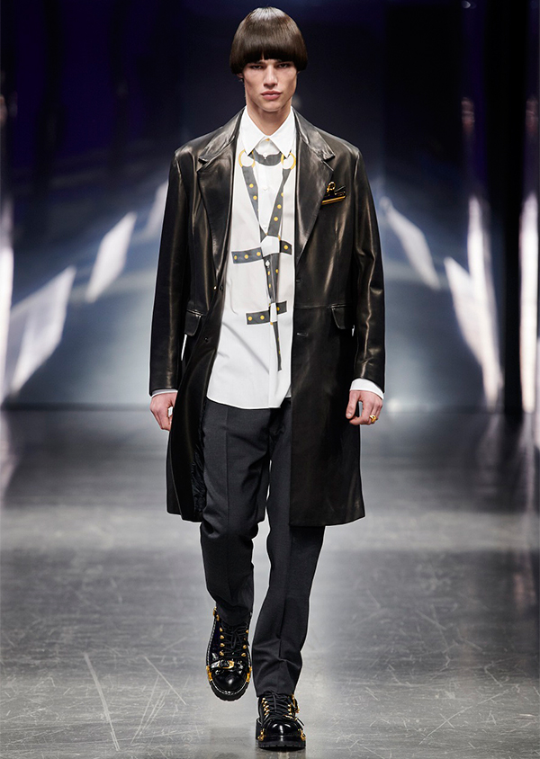 VERSACE UOMO AUTUNNO-INVERNO 2019 Una riflessione sul concetto di uomo oggi, sul significato di mascolinità: la collezione Autunno-Inverno 2019 non va solo oltre le regole tradizionali, ma si spinge a sfidare convenzioni e stereotipi. “Negli anni ’90 c’era un’idea molto precisa di chi fosse l’uomo, di come dovesse vestirsi e comportarsi. Con il nuovo Millennio tutto questo è stato stravolto un poco per volta e la moda si è evoluta in modo drastico. Oggi, non è più possibile disegnare un perimetro preciso intorno al concetto di uomo perché la società moderna ha concesso a ognuno una maggiore libertà di esprimere sé stessi non solo con le azioni, ma anche con ciò che si indossa. Ciò che ho voluto far vedere con questa collezione sono le diverse sfaccettature dell’uomo di oggi. Un uomo che, come tutti noi, si veste in modo diverso a seconda dei contesti e ha trovato quel coraggio che gli mancava in passato. Se dovessi definirlo in poche parole, direi che si tratti di un uomo che sa osare”.