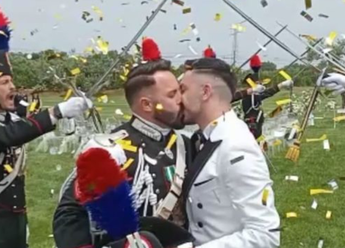 Quello tra Angelo e Giuseppe non è il primo matrimonio LGBTQIA+ in divisa, ma è il primo in cui a sposarsi sono due uomini. Nel luglio del 2022 si è celebrata a Cefalù, l’unione tra la vicebrigadiere dei Carabinieri Elena Mangialardo e la compagna Claudia De Dilectis. E nel 2019 sono convolate a nozze, a La Spezia, Maria Rosa Mogavero, sottufficiale nocchiere delle Capitanerie di porto della città ligure, e Lorella Cipro, comandante di un’unità della Marina militare. Risale al 2017 la decisione dello Stato maggiore della Difesa di imporre le linee guida sulle celebrazioni dei militari anche dello stesso sesso.