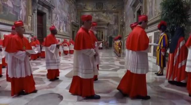 Città del Vaticano, 7 mag. (askanews) – Picchetto d’onore delle Guardie Svizzere in alta uniforme per la processione dei 133 cardinali elettori dalla Cappella Paolina verso la Cappella Sistina per l’inizio ufficiale del Conclave, con l’Extra Omnes.I cardinali elettori sfilano secondo l’ordine dei Diaconi, i Presbiteri, i Vescovi; da ultimo il cardinale Pietro Parolin accompagnato dal Maestro delle Celebrazioni Liturgiche Pontificie, mons. Diego Ravelli. Mentre la processione avanza, i cantori e l’assemblea cantano, a cori alterni, le litanie.Giunti alla Cappella Sistina, i cardinali elettori occupano ciascuno il posto assegnato con il proprio nome, dove hanno una copia del Vangelo, una copia della Costituzione Apostolica “Universi Dominici Gragis”, una penna e una cartellina rossa.