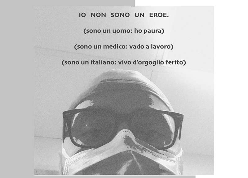 «Non permettere a nessuno di chiamarti eroe. Perché chi ti chiama eroe in tempo di guerra è lo stesso che in tempo di pace ha svilito, mortificato, dissacrato la professione medica. Non permettere a nessuno di chiamarti eroe. Perché chi lo fa ha la passione per gli “slogan”... isterici e riduttivi. E la “malasanità” è uno slogan, uno dei meglio riusciti. Non permettere a nessuno di chiamarti eroe. Perché non si trasforma una categoria di professionisti, con i loro diritti e i loro doveri, con le loro famiglie, con esigenze sovrapponibili a quelle di ogni altro lavoratore, in un improbabile esercito di martiri o missionari.