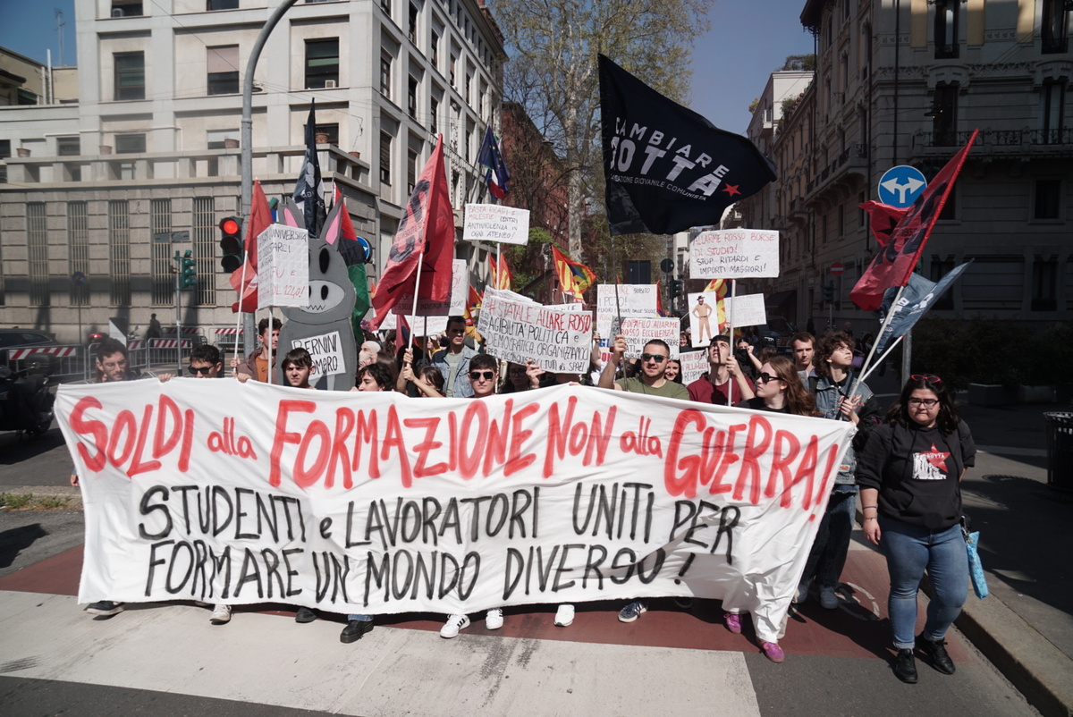 A Roma, una bandiera dell'Unione Europea è stata bruciata davanti al ministero dell'Istruzione e del Merito a viale Trastevera. La mobilitazione, convocata dagli studenti di Cambiare Rotta e dell'Osa per protestare contro i ministri Giuseppe Valditara e Anna Maria Bernini: "Soldi alla formazione, non alla guerra - studenti e lavoratori uniti per formare un mondo diverso", si legge su uno degli striscioni.