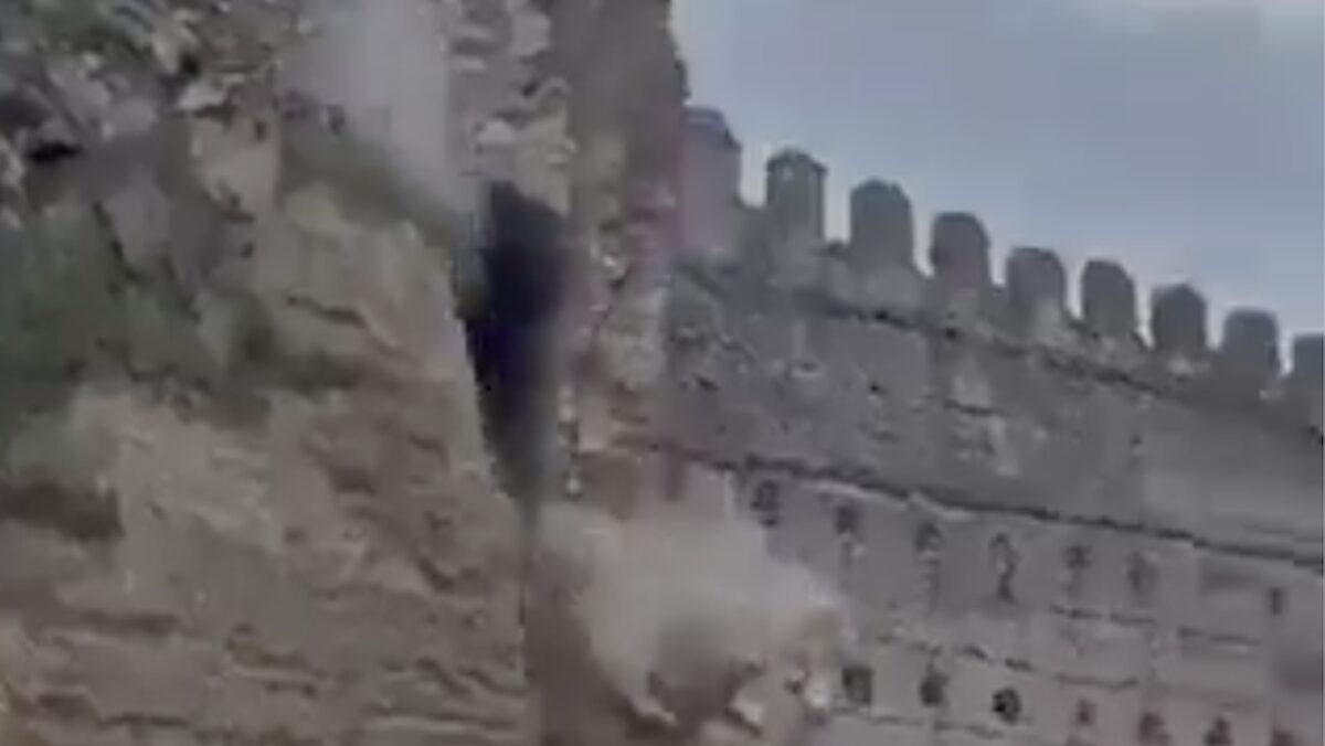 Crolla il castello di Toledo, il momento esatto in cui la torre si schianta a terra. VIDEO