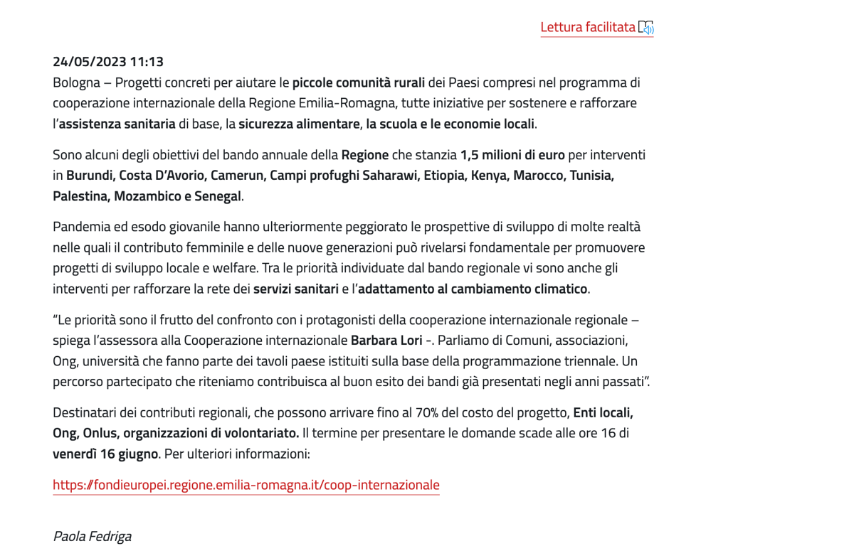 La richiesta di aiuti economici ai cittadini italiani per gli alluvionati in Emilia Romagna è la prima cosa in cui ci si imbatte andando sulla pagina dei fondi che la Regione a guida Pd, in questi giorni, destina agli africani. Sono queste le priorità?