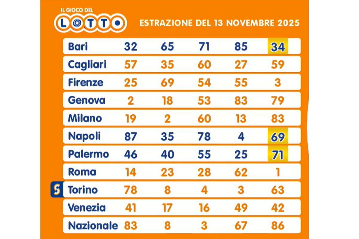 Leggi anche Estrazioni Lotto, SuperEnalotto e 10eLotto di oggi venerdì 7 Novembre 2025: numeri in diretta, quote e jackpot