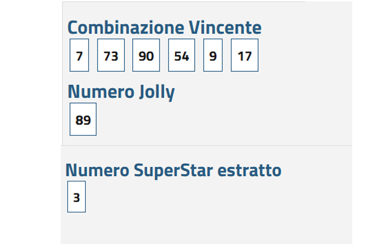 SuperEnalotto: combinazione vincente, Jolly, SuperStar e quote (concorso n. 164)