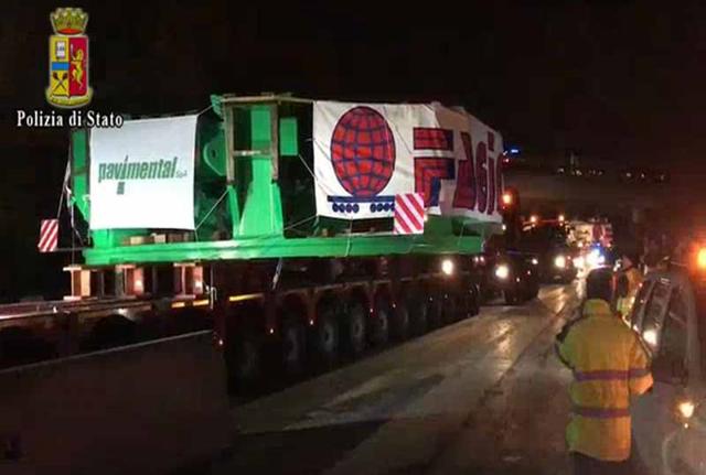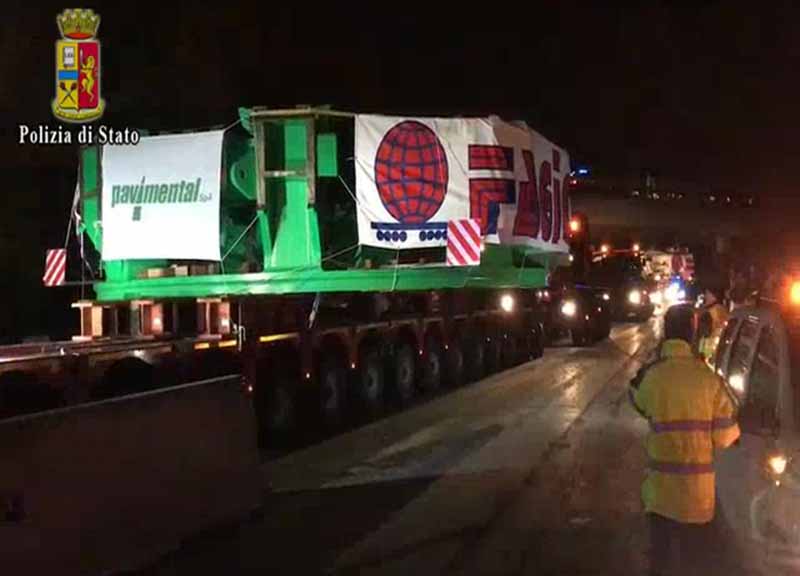 Per l´intero tragitto, dal porto di Ravenna a Barberino di Mugello, è stata la Polizia Stradale a scortare il "treno" di convogli, al centro del quale si trovava l´imponente fresa dal diametro finale di 15,87 metri ed un peso complessivo di circa 4800 tonnellate, che sarà utilizzata per la perforazione della galleria "Santa Lucia", a completamento del tracciato della A1-Variante di Valico tra Bologna e Firenze.
