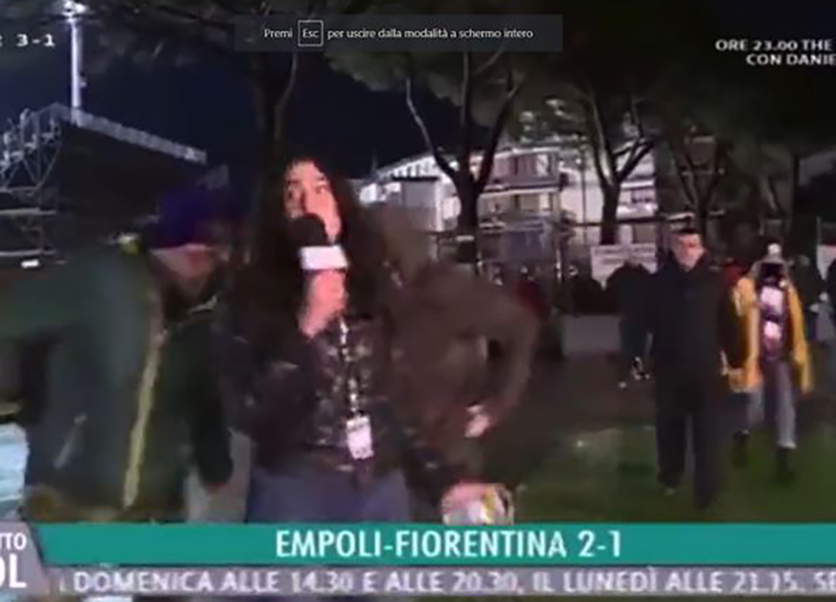 In un filmato spuntato sui social si vede chiaramente l’accaduto. La giornalista di Toscana Tv nel post partita, fuori lo stadio di Empoli, cercava di intercettare i tifosi per un commento a caldo. In quei frangenti un soggetto non ancora identificato è passato dietro la cronista toccandole, a favor di telecamera, il fondo schiena.